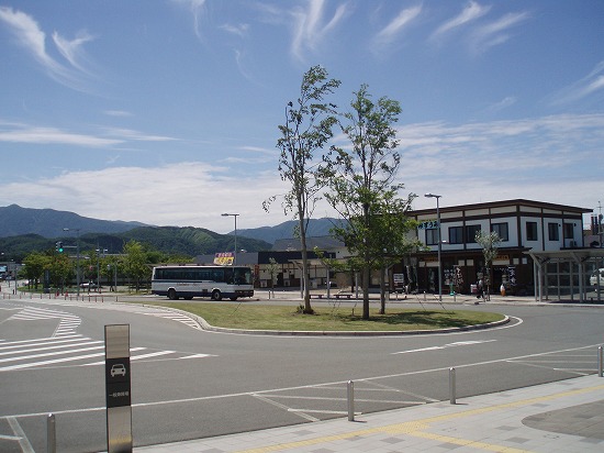 写真の奥のほうに車が停まっていますが、ここに車を置いてバスに乗り換えてください。