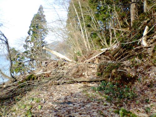 が、まだ、下の写真のように木々と土砂が自転車道を覆っています。