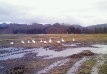 以前も紹介したので、しつこいかもしれませんが、私の春の風物詩「田んぼ白鳥