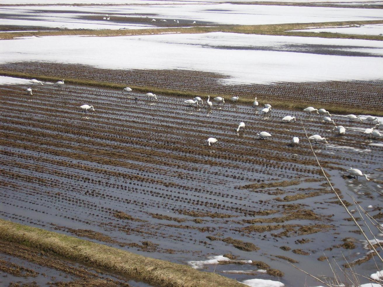」と近くまで確認しに行ったことを思い出します。普段は真っ白な白鳥さんですが、泥んこの「田んぼ白鳥」(我家ではこう呼ぶようになりました。)は私にとって春の訪れを感じさせる風物詩となりました。