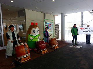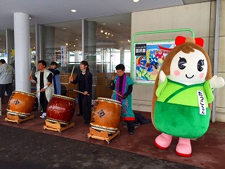内容:龍神太鼓とゆるキャラ たっこちゃんによるお出迎え