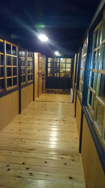 昔の木造校舎を思い出すかのような懐かしい渡り廊下に出ます。