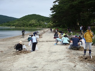 60名近くの参加者で、遊泳場~蓬莱の松付近までの清掃を行いました。