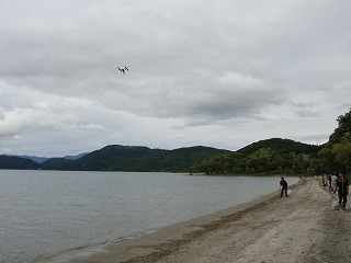 清掃の様子をドローンで撮影